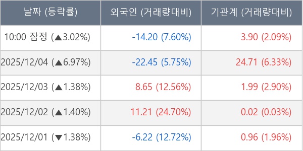 ※ 사모펀드 등 일부 기관의 순매매량은 표시되지 않음