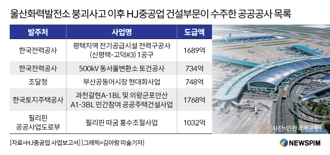 | 울산화력발전소 붕괴사고 이후 HJ중공업 건설부문 공공공사 수주 내역 [그래픽=김아랑 미술기자] |