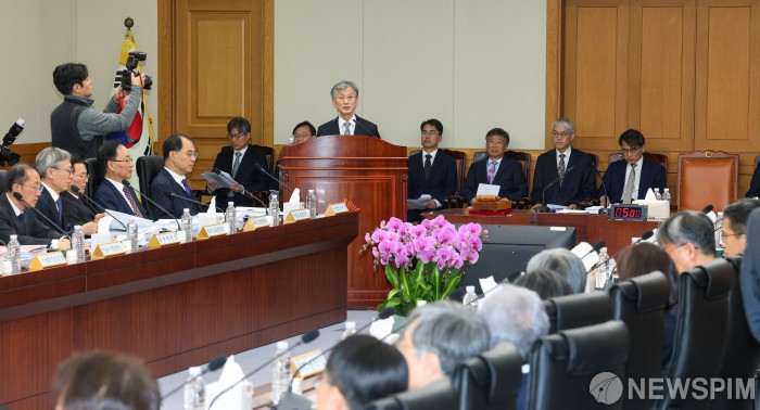 [서울=뉴스핌] 최지환 기자 = 조희대 대법원장이 5일 오후 서울 서초구 대법원에서 열린 전국법원장회의에서 모두발언을 하고 있다. 2025.12.05 choipix16@newspim.com