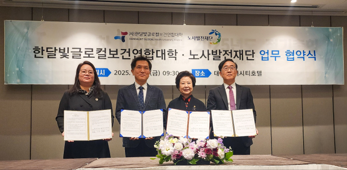 [세종=뉴스핌] 정성훈 기자 = 노사발전재단과 한달빛글로컬보건연합대학은 5일 대전 인터시티호텔에서 보건·복지서비스 산업의 발전과 중장년의 고용활성화 촉진 및 지역 산업 경쟁력 강화를 위한 업무협약(MOU)을 체결했다.