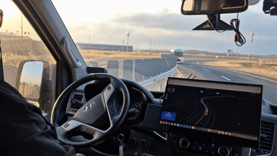 이후 AI 기반 안전알림 시스템 체험을 하기 위해 버스에 탑승했다. 운전석 상단 모니터에는 졸음운전·흡연·휴대폰 사용 등 운전자 위험행동과 신호위반·불법유턴 등 법규위반 항목, 전방추돌·보행자충돌·차선이탈·과속 등의 ADAS(첨단 운전자 보조 시스템) 경보가 실시간으로 떴다. 강한 햇빛에 운전자가 표정을 찡그리자 시스템에서 "졸음 운전을 하지 말라"는 멘트가 흘러나왔다. 눈 감는 모습을 인식해 경고를 건넨 셈이다.
