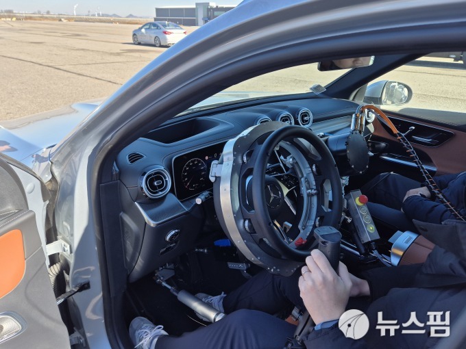 차량 운전은 사람이 아닌 드라이빙 로봇이 맡아 시험 속도를 정밀하게 유지하고, 시험자는 안전 규정상 탑승해 세이프티 장치를 직접 작동해야 한다. AEBS는 저속에서는 회피가 가능하지만 고속에서는 감속 중심으로 기능한다. 대부분의 차량이 동일한 경향을 보인다.