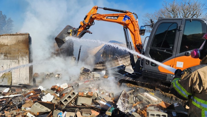 | 5일 오전 9시 44분쯤 태안군 근흥면 안기리에 위치한 단독주택에서 불이 나 소방대원들이 진압하는 모습.[사진=태안소방서] 2025.12.06 jongwon3454@newspim.com |