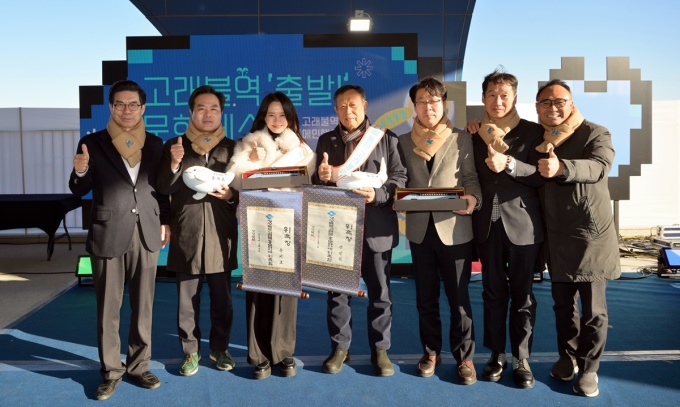 | 경북도와 영덕군, 경북문화관광공사, 코레일대구본부가 동해선 영덕 고래불역사에서 '고래불역 관광거점화' 조성 협약식을 맺고 홍보대사로 위촉된 배우 송지효, 고래 사진작가 장남원씨와 기념촬영하고 있다.[사진=경북도]2025.12.07 nulcheon@newspim.com |