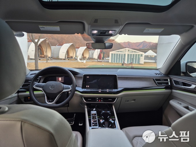 그렇지만 결코 '둔하게' 보이지 않는다. 아마도 모터스포츠에서 영감을 받은 R-Line 디자인 패키지가 적용돼 라인이 '예쁘게' 이어지기 때문일 것이다. 여기에 전면부 차체 중앙의 '일루미네이티드 프론트 로고'는 프리미엄 럭셔리 차량들이 주는 그것과 결코 다르지 않다.
