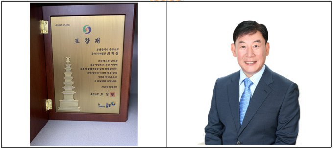 | 충주시장으로부터 받은 표창패(왼쪽), 최학철 부산 중구의원 [사진=부산 중구의회] 2025.12.07 |