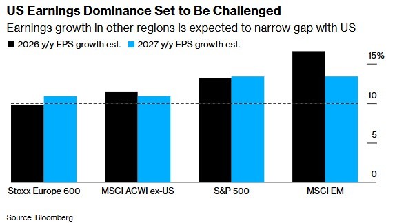 웰링턴 매니지먼트의 주식 전략가 앤드루 헤이스켈은 "우리는 일본, 대만, 한국을 포함해 시가총액과 지역 전반에 걸쳐 이익 모멘텀의 의미 있는 확대가 시작되는 것을 보기 시작했다"며 "2026년을 내다보면 유럽과 더 넓은 범위의 신흥시장에서 이익 성장의 부활에 대한 명확한 잠재력을 본다"고 말했다.