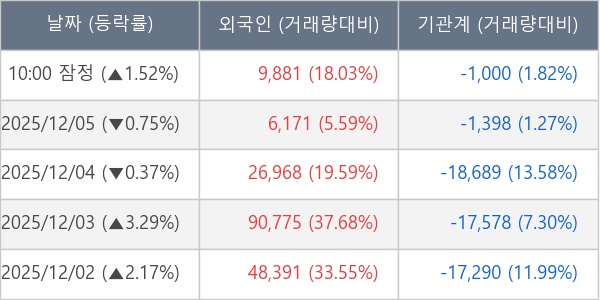 ※ 사모펀드 등 일부 기관의 순매매량은 표시되지 않음