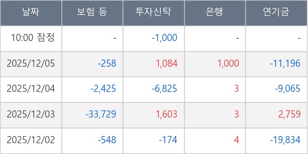 [표] 주요 기관별 순매매량 (단위 주)