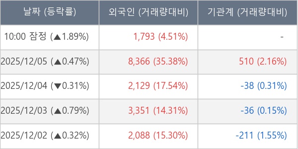 [표] 외국인ㆍ기관 순매매량 (단위 주)