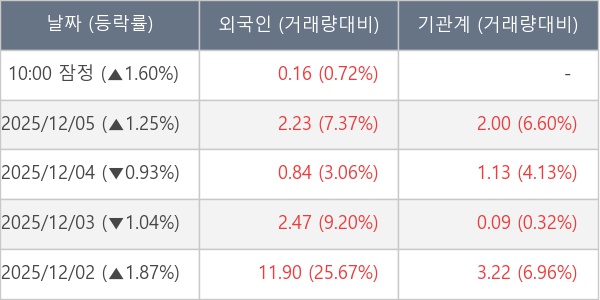 [장중수급포착] 포스코엠텍, 외국인 10일 연속 순매수행진... 주가 +1.60%