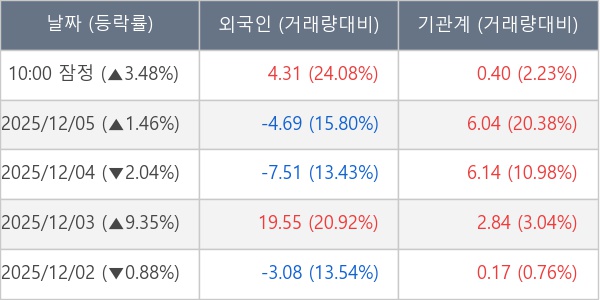 ※ 사모펀드 등 일부 기관의 순매매량은 표시되지 않음