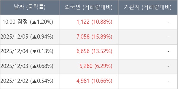 [서울=뉴스핌] 로보뉴스 = 08일 10시 15분 현재 메가터치(446540)는 전일 대비 1.20% (현재가 3,795원) 상승했고, 외국인이 최근 5일 연속 순매수(누적 25,077주, 잠정) 행진을 하고 있다.