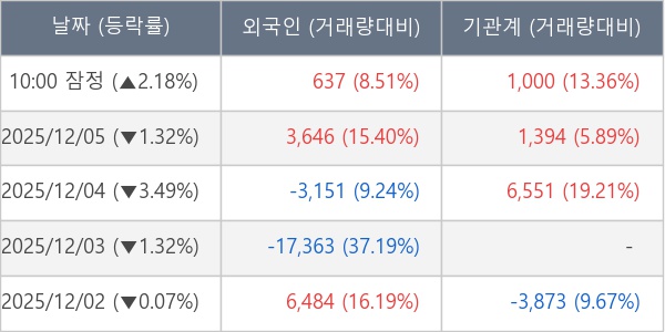 ※ 사모펀드 등 일부 기관의 순매매량은 표시되지 않음