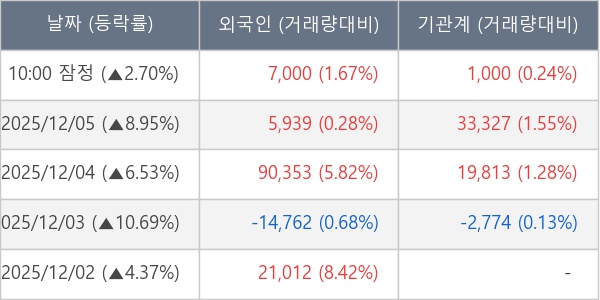 ※ 사모펀드 등 일부 기관의 순매매량은 표시되지 않음