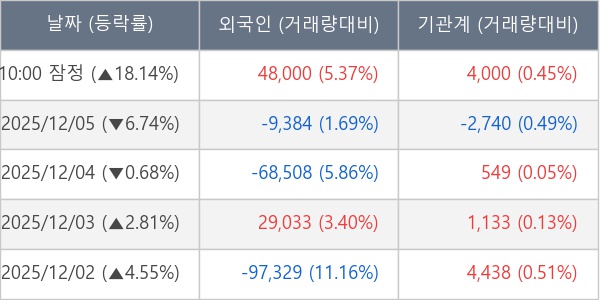 ※ 사모펀드 등 일부 기관의 순매매량은 표시되지 않음