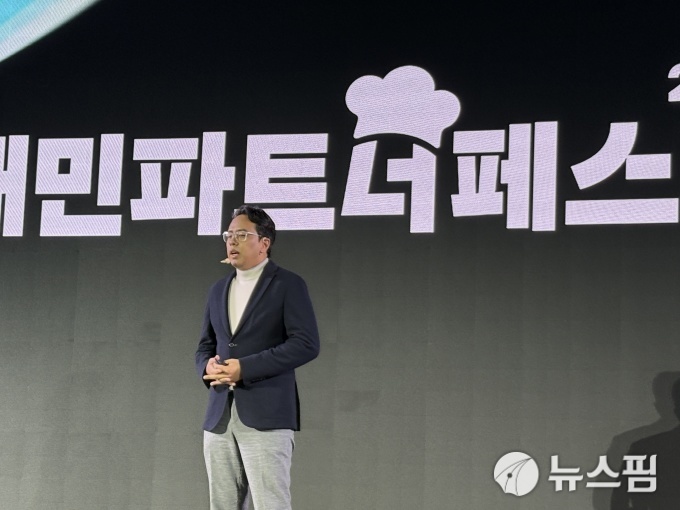 | [서울=뉴스핌] 조민교 기자 = 8일 서울 서초구 양재동 aT센터에서 열린 '2025 배민파트너페스타' 행사장에서 김범석 우아한형제들 대표가 키노트 발표를 진행하고 있다. 2025.12.08 whalsry94@newspim.com |