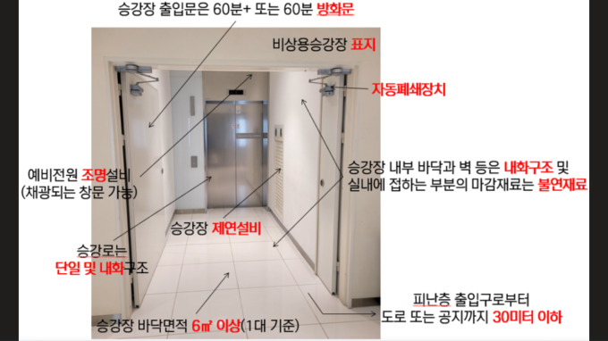 | [서울=뉴스핌] 송현도 기자 = 비상용 승강기 승강장 관련 소방 안전 기준. [사진=독자제공] 2025.12.08 dosong@newspim.com |