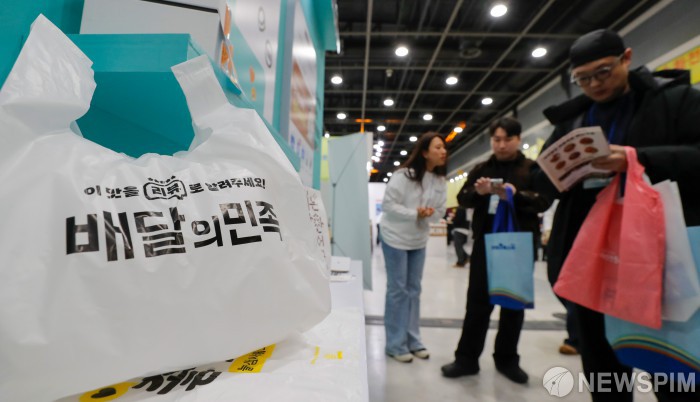 [서울=뉴스핌] 류기찬 기자 = 8일 오후 서울 서초구 aT센터에서 열린 ‘2025 배민파트너페스타’에서 관람객이 다회용기 부스를 살펴보고 있다. 2025.12.08 ryuchan0925@newspim.com