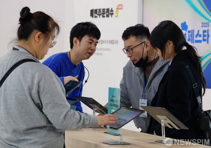 [서울=뉴스핌] 류기찬 기자 = 8일 오후 서울 서초구 aT센터에서 열린 ‘2025 배민파트너페스타’를 찾은 관람객들이 배민주문접수 프로그램을 체험하고 있다. 2025.12.08 ryuchan0925@newspim.com