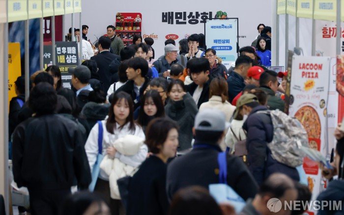[서울=뉴스핌] 류기찬 기자 = 8일 오후 서울 서초구 aT센터에서 열린 '2025 배민파트너페스타'가 관람객들로 붐비고 있다. 2025.12.08 ryuchan0925@newspim.com