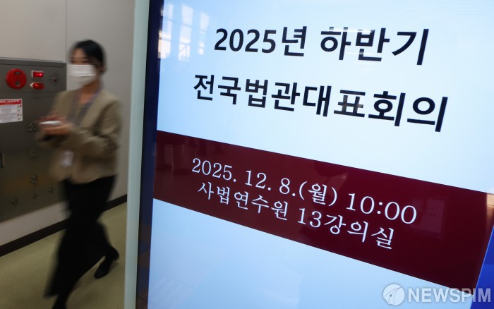 [고양=뉴스핌] 김지나 박민경 인턴기자 = 여당이 추진하는 사법개혁안을 둘러싸고 법관들이 공식 논의를 진행한 전국법관대표회의가 8일 오후 3시40분경 약 5시간여의 회의를 마치고 종료됐다. 법관들은 정기회의를 마치고 여당이 강행하고 있는 내란전담재판부와 법왜곡죄의 위헌성을 우려하는 공식 메시지를 냈다.