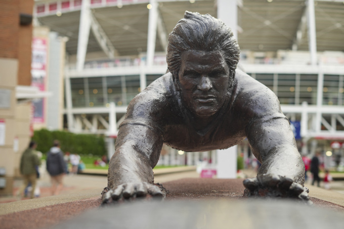| [신시내티 로이터=뉴스핌] 장환수 스포츠전문기자= 피트 로즈가 영구제명에서 복권된 5월 14일 신시내티 아메리칸 볼파크에서 촬영한 그의 동상. 2025.05.14 zangpabo@newspim.com |