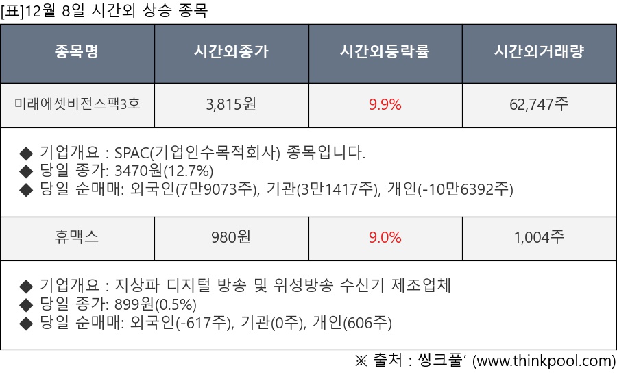 ※ 관련 종목: 미래에셋비전스팩3호, 휴맥스