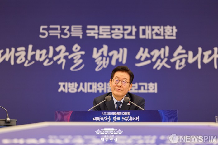 [서울=뉴스핌] 이재명 대통령이 8일 서울 용산구 대통령실에서 열린 지방시대위원회 보고회에 자리하고 있다. [사진=대통령실] 2025.12.08 photo@newspim.com