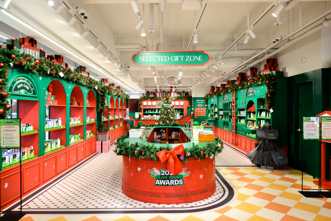 | '2025 올리브영 어워즈'를 기념하여 꾸며진 '트렌드팟 바이 올리브영홍대' 내부 전경. [사진=CJ올리브영 제공] |