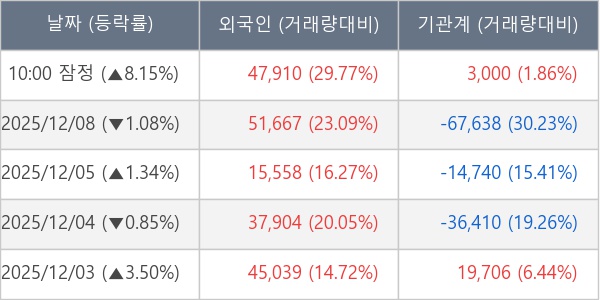 ※ 사모펀드 등 일부 기관의 순매매량은 표시되지 않음
