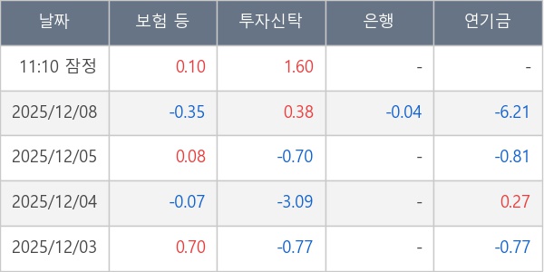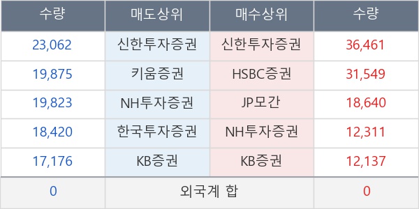 [표] 주요 기관별 순매매량 (단위 주)
