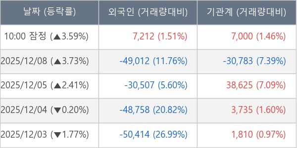 [장중수급포착] 서진시스템, 외국인/기관 동시 순매수… 주가 +3.59%