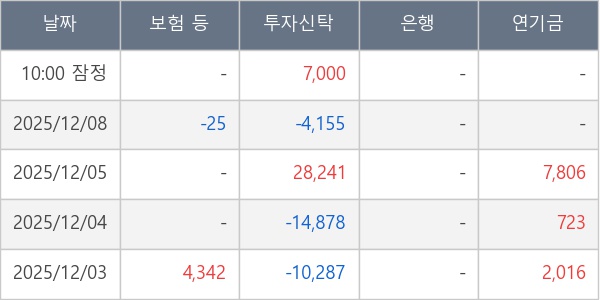 ※ 사모펀드 등 일부 기관의 순매매량은 표시되지 않음