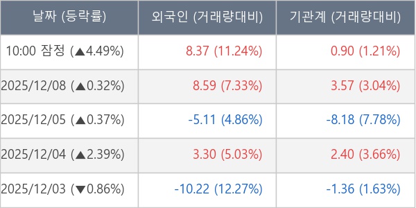 ※ 사모펀드 등 일부 기관의 순매매량은 표시되지 않음