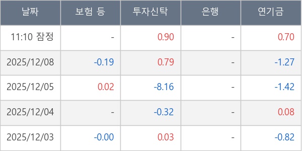 [표] 주요 기관별 순매매량 (단위 만주)