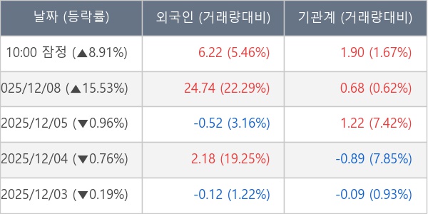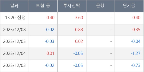 ※ 사모펀드 등 일부 기관의 순매매량은 표시되지 않음