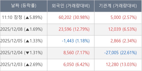 ※ 사모펀드 등 일부 기관의 순매매량은 표시되지 않음