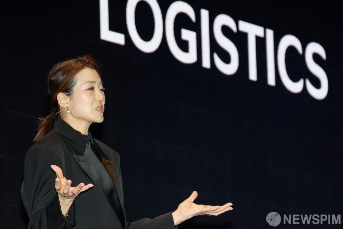 [서울=뉴스핌] 류기찬 기자 = 조현민 한진 사장이 9일 오후 서울 용산구 서울드래곤시티 그랜드볼룸에서 열린 ‘한진 언박싱데이 2025(Unboxing Day 2025)’에서 주제발표를 하고 있다. 2025.12.09 ryuchan0925@newspim.com