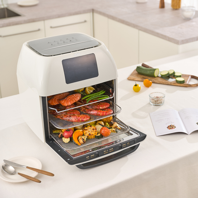 AO-16L는 16L 용량에 30cm 내부 조리 공간, 3단 트레이로 한번에 넉넉한 요리가 가능한 것이 특징이다. 문틀, 회전 팬, 열선 등 음식이 닿지 않는 면까지 모두 스테인리스(올스텐)로 만들어져 위생과 안정성을 철저히 지킨 제품이다. '겉바속촉' 식감과 풍미를 위해 2500RPM 회전 팬 속도를 적용하고, 5중 나선형 파워 열선으로 200℃ 고속 히팅이 가능해 별도의 예열 시간이 필요 없다.