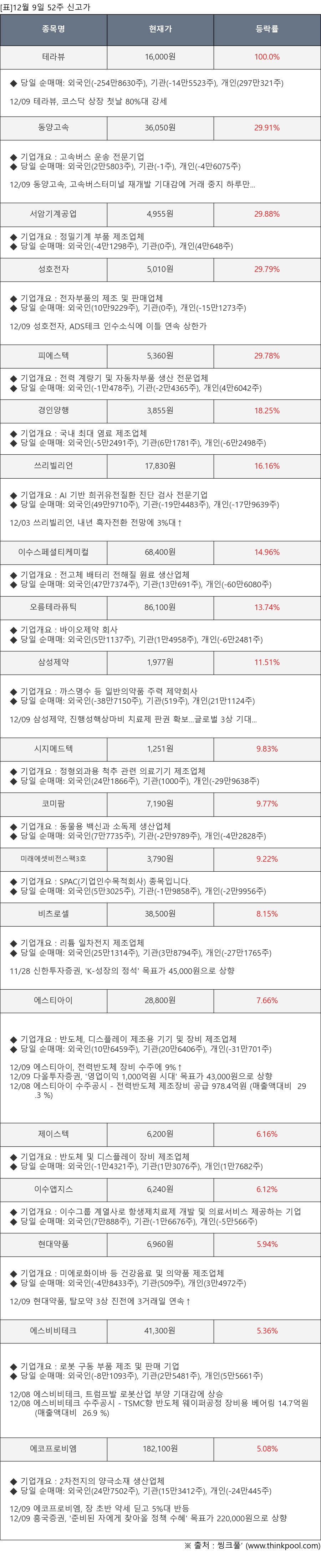 ※ 관련 종목: 테라뷰, 동양고속, 서암기계공업, 성호전자, 피에스텍, 경인양행, 쓰리빌리언, 이수스페셜티케미컬, 오름테라퓨틱, 삼성제약, 시지메드텍, 코미팜, 미래에셋비전스팩3호, 비츠로셀, 에스티아이, 제이스텍, 이수앱지스, 현대약품, 에스비비테크, 에코프로비엠