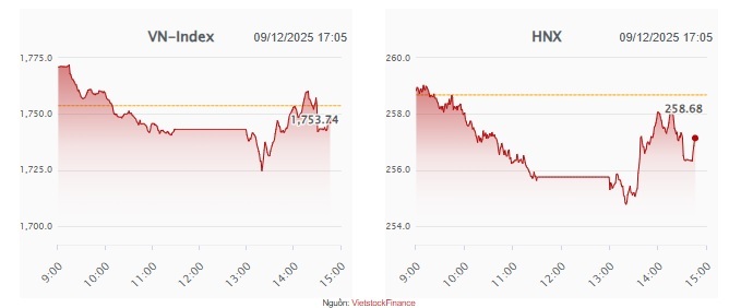 | [그래픽=비엣 스톡 캡처] 베트남 증시 VN지수 및 HNX지수 9일 추이 |