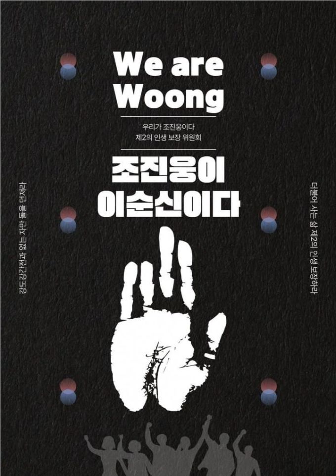 각종 온라인 커뮤니티와 SNS를 중심으로 조진웅과 이순신의 이미지를 결합한 포스터가 빠르게 퍼지며 이목을 집중시켰다. 해당 포스터에는 '조진웅이 이순신이다'라는 문구와 함께 안중근 의사를 연상시키는 손바닥 이미지가 사용됐으며, "강도·강간 전과 없는 자만 돌을 던져라", "더불어 사는 삶, 제2의 인생 보장하라"는 문구도 포함돼 있다.