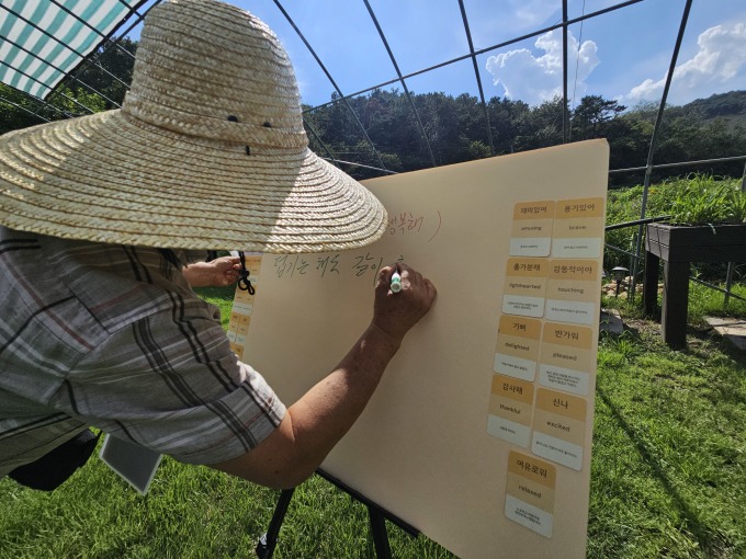 | 농촌진흥청이 노년층을 대상으로 개발한 '밀 새싹 활용 치유농업 프로그램'에서 참가자들이 '감정 들여다보기' 체험을 하고 있다. [사진=농촌진흥청] 2025.12.10 plum@newspim.com |