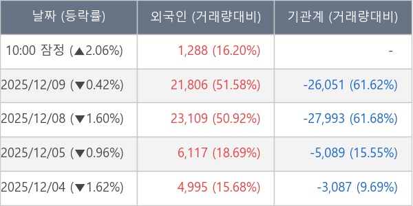 [표] 외국인ㆍ기관 순매매량 (단위 주)