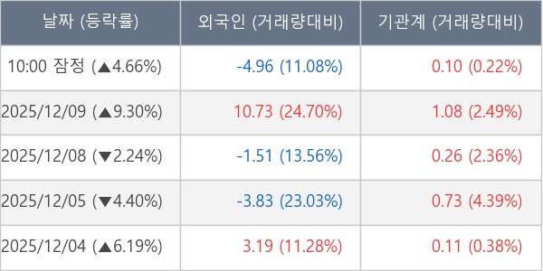 [장중수급포착] 나이벡, 기관 6일 연속 순매수행진... 주가 +4.66%
