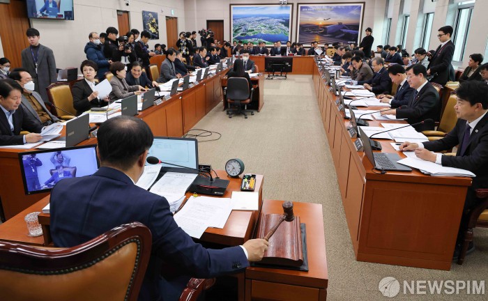 [서울=뉴스핌] 윤창빈 기자 = 맹성규 국회 국토교통위원장이 10일 오전 서울 여의도 국회에서 열린 국토교통위원회 전체회의에서 의사봉을 두드리고 있다. 2025.12.10 pangbin@newspim.com