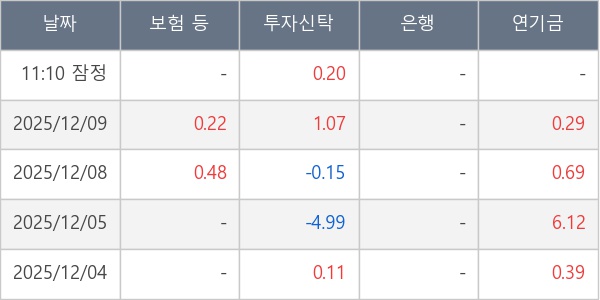 ※ 사모펀드 등 일부 기관의 순매매량은 표시되지 않음