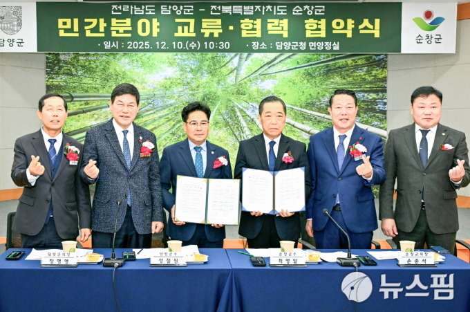 [순창=뉴스핌] 이백수 기자 = 전북 순창군과 전남 담양군이 민간 분야에서의 교류 활성화를 위해 자매결연 협약을 체결하며 두 지역의 상생 발전을 위한 협력을 강화했다고 10일 밝혔다.