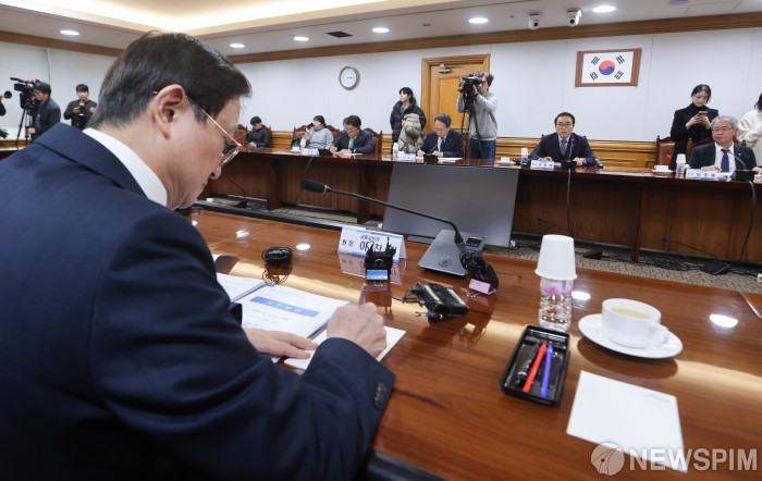 [서울=뉴스핌] 최지환 기자 = 조용병 은행연합회장이 10일 오후 서울 중구 은행회관에서 열린 금융감독원장-금융지주회장 간담회에서 모두발언을 하고 있다. 2025.12.10 choipix16@newspim.com